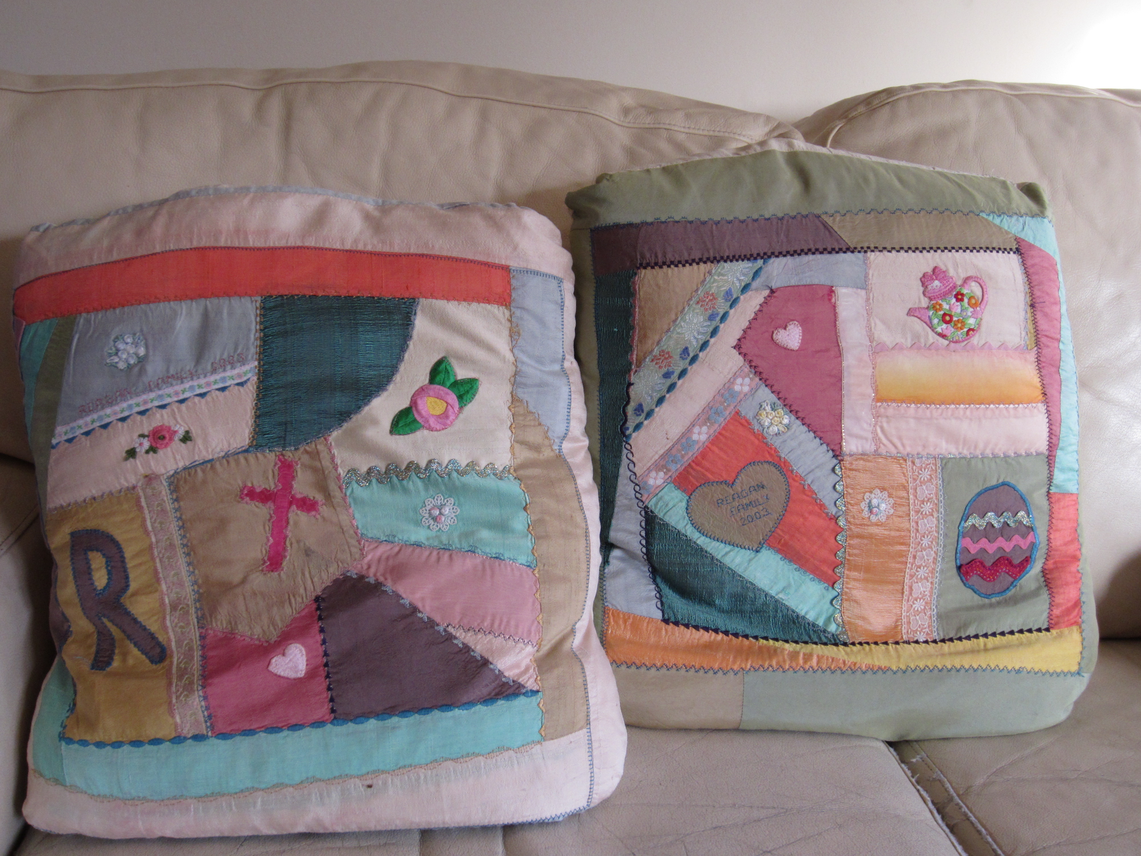 We spent a wonderful week-end together, sewing and reminiscing about Mom. Some started working on Thursday afternoon, and others arrived the next day. During the week-end, we ate some of the foods that my mother and grandmother made, including the Magic Cookie bars that my mother made for our children. I baked pumpernickel bread like my grandmother’s, and we ate “Grandma’s Pancakes” for breakfast. We told family stories, fingered the fabrics from my mother’s clothing, dined and took long walks together. I felt Mom’s presence with us all week-end.